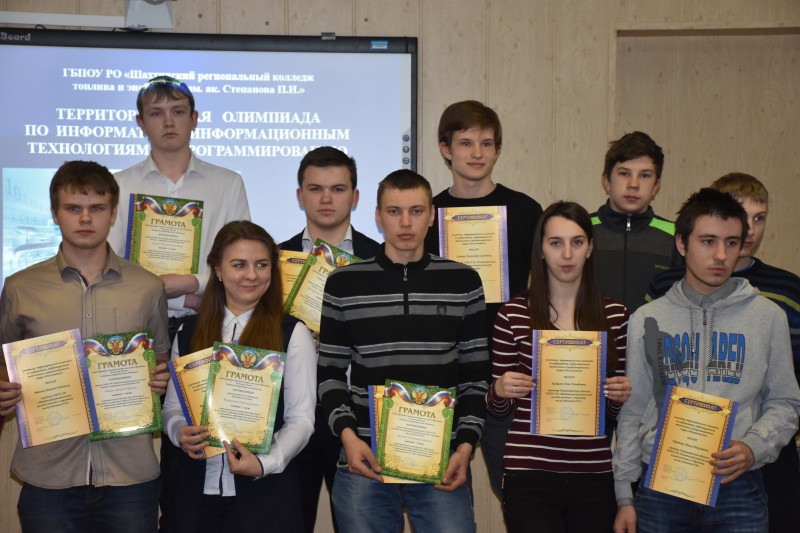 14 марта 2017 года в соответствии с планом работы Шахтинского территориального объединения на 2017 год в ГБПОУ РО «Шахтинский региональный колледж топлива и энергетики им. ак. Степанова П.И.» была проведена территориальная олимпиада по информатике, информационным технологиям и программированию в двух секциях: «Пользователи» и «Программисты»