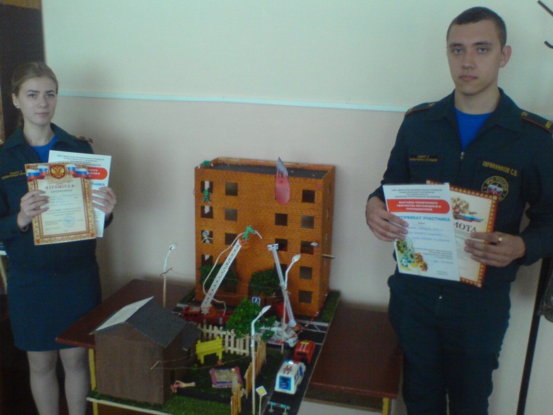 В номинации «Наглядные пособия, макеты» студенты группы ЗЧС-31 Кротенко Олеся и Овчинников Сергей с макетом «Боевое развертывание пожарного караула » заняли 3 место.