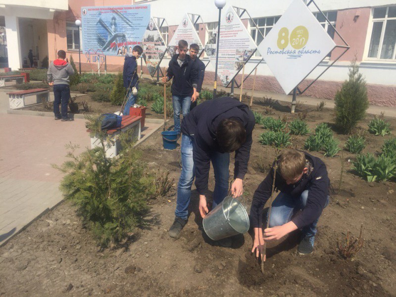 13.04.2018г. в рамках ежегодного Дня древонасаждения студенты приняли активное участие в благоустройстве и озеленении территории колледжа и города, всего было высажено 64 куста роз, 5 кустов можжевельника и 7 туй. «Каждое дерево, посаженное даже в собственном дворе, – это значимый вклад в общее дело озеленения нашего города»