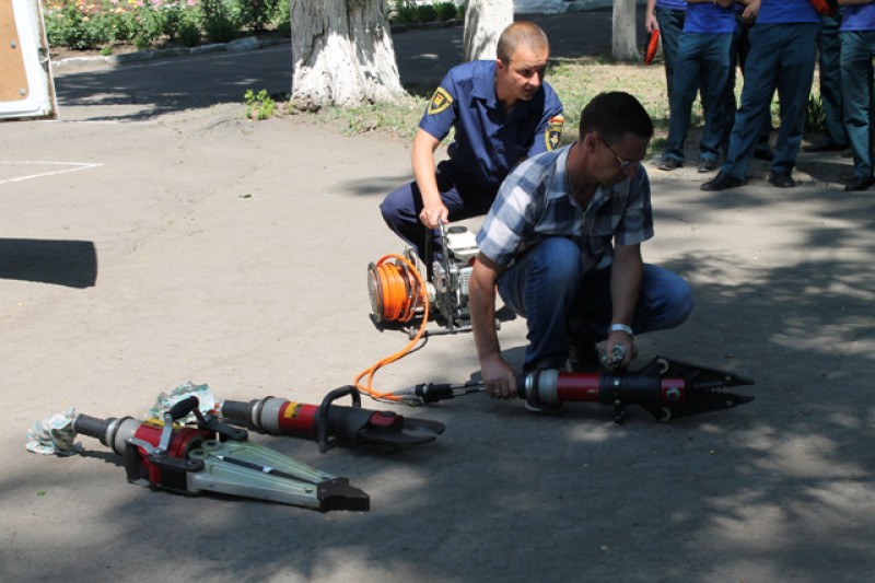 Спасатели МКУ «Управление по делам ГО и ЧС» г. Шахты продемонстрировали для будущих спасателей аварийно-спасательное оборудование и инструмент.