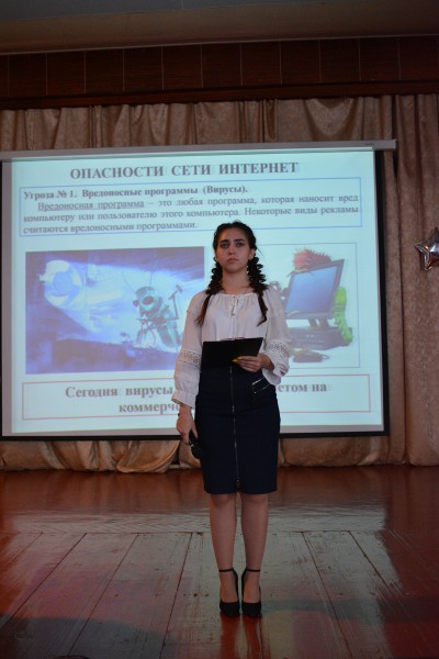 В актовом зале на мероприятии была деловая атмосфера: множество конкурсов на выявление тех или иных знаний, связанных с правилами безопасности в интернете, а также ребята узнали, как защитить свои персональные данные, совершать безопасные покупки в интернет-магазинах, анализировали правдивость и достоверность информации в сети Интернет и многое другое.