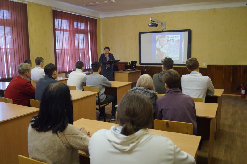 21.11.2019 года в библиотеке колледжа прошел литературный час «Женщина – родник красоты», посвященный празднику День Матери России. Ребята принимали активное участие в течение всего мероприятия, читали стихи, рассказывали о своих мамах. Студенты ушли с хорошим настроением и приятными впечатлениями!