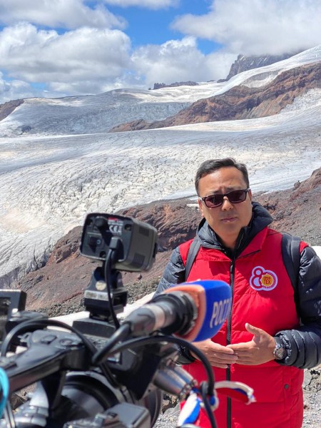 За сутки до этого на высоте 4200 м под народный танец горских народов Кавказа - лезгинку произошла торжественная передача юбилейного флага
