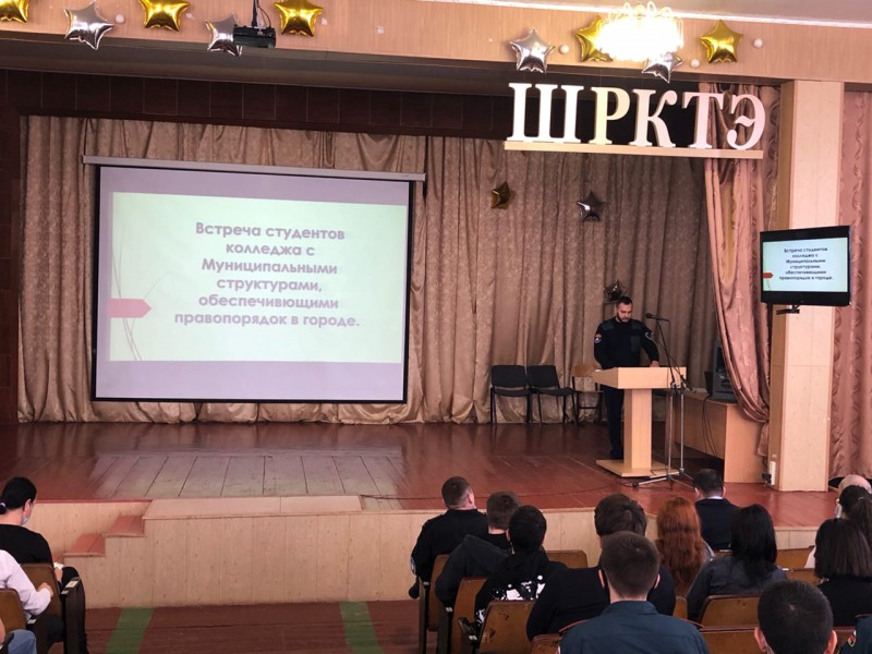 1.04.2021 для студентов колледжа была организована профилактическая встреча с муниципальными структурами, обеспечивающими правопорядок в городе.
