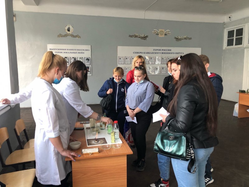 Школьники с большим интересом осматривали кабинеты и лаборатории, побывали в музее истории ШРКТЭ. Ученики школ посмотрели на химические опыты, подготовленные студентами, поучаствовали в мастер-классах по приготовлению кондитерских изделий и попробовали свои силы в оказании первой медицинской помощи на специальном тренажере.