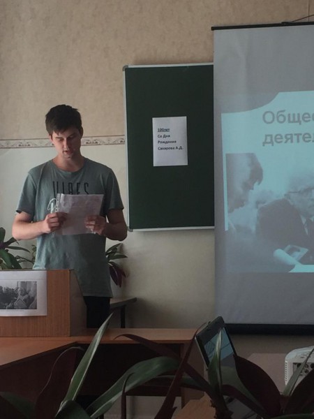 20.05.21 г. в библиотеке колледжа состоялся круглый стол «А.Д. Сахаров – человек эпохи», организованный преподавателями Сысоевой О.Н., Решновецкой С.В., Павловым И.Б. и зав.библиотекой Литвиновой В.В. вместе со студентами 1 курса. Были заслушаны доклады о научной, изобретательской, общественной деятельности ученого.