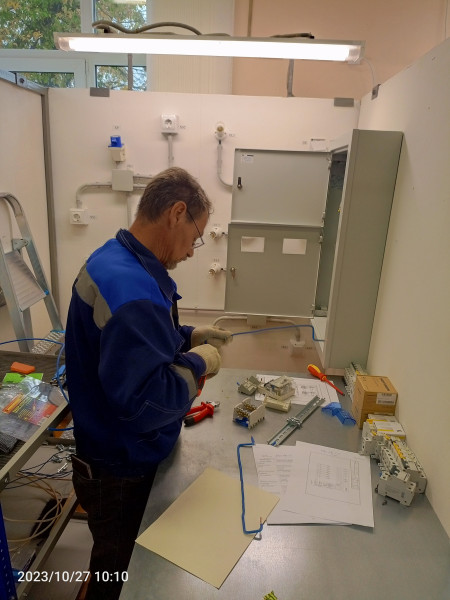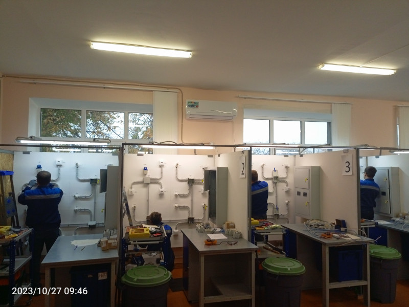 С 23.10.2023г. - 27.10.2023 г. на базе колледжа в мастерской по компетенции Электромонтаж прошла стажировка слушателей по дополнительной профессиональной программе – программе повышения квалификации «Обучение педагогических работников практическим навыкам работы на оборудовании в современных мастерских в соответствии с профилем реализуемой основной образовательной программы среднего профессионального образования».