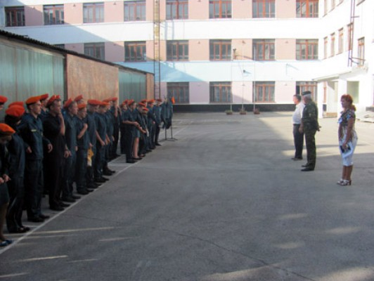 30 августа 2013года со студентами нового набора этой специальности состоялся строевой смотр, на котором директор колледжа – Кочетов Е.В. – поздравил ребят с зачислением в учебное заведение, а заместитель директора по обеспечению безопасности полковник – Покидышев Ю.А. – проверил правильность подгонки формы.