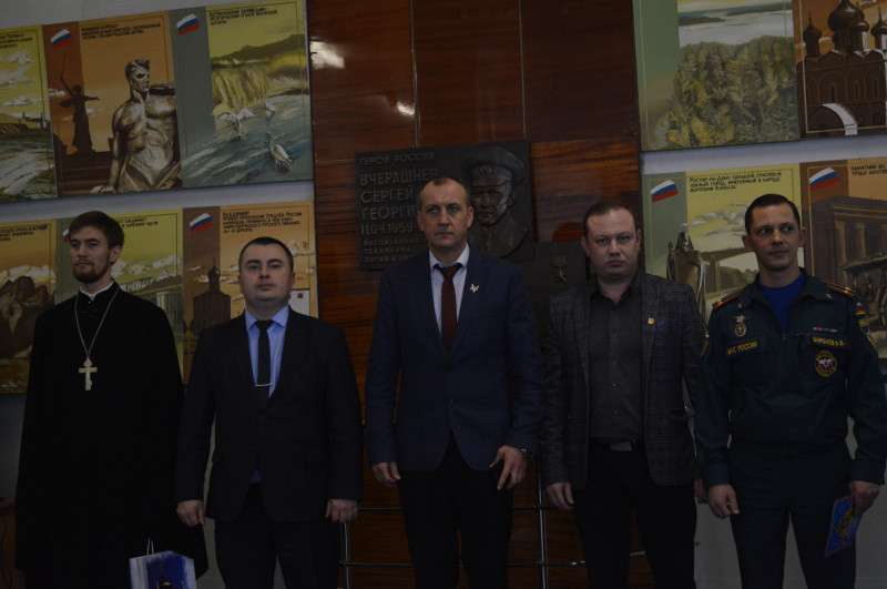 С приветственным словом и с поздравлениями выступили почетные гости: заместитель Главы Администрации города Шахты по административным вопросам Болтенков Александр Викторович, Священник Покровского кафедрального собора города Шахты иерей Зырянов Даниил Яковлевич, руководитель муниципального казенного учреждения города Шахты «Управление по делам ГО ЧС» Бережиани Богдан Евгеньевич, начальник 3 Пожарно-спасательного отряда Федеральной противопожарной службы Государственной противопожарной службы Главного управления МЧС России по Ростовской области, подполковник вневедомственной службы, инженер пожарной безопасности Широков Алексей Брониславович.