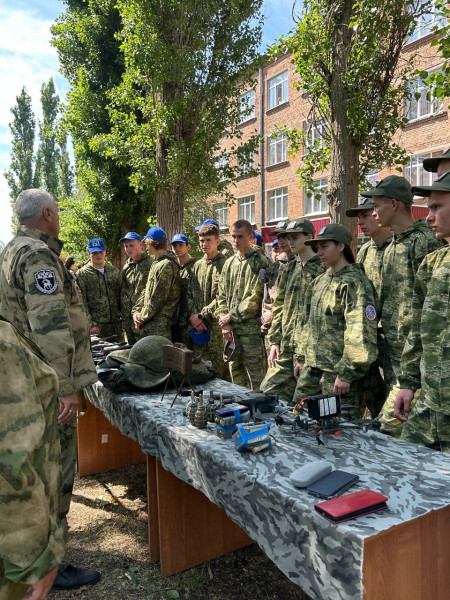 Особое внимание ребят привлекла выставка учебного оружия и амуниции, представленная казаками Шахтинского городского казачьего общества «Александровск – Грушевское»