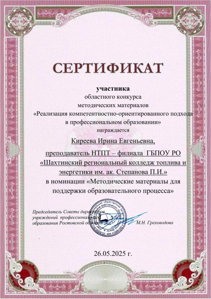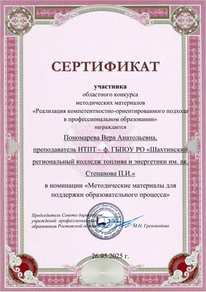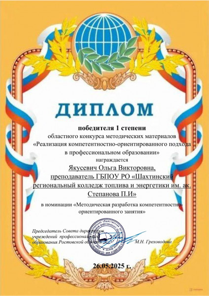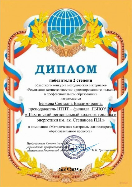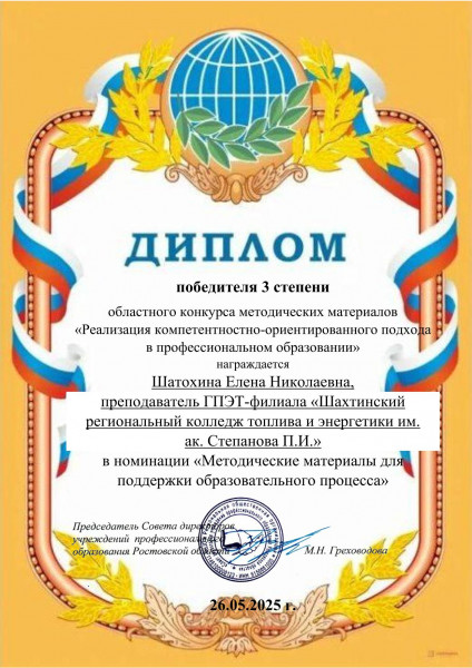 В мае 2025 года преподаватели колледжа приняли участие в областном конкурсе методических материалов «Реализация компетентностно-ориентированного подхода в профессиональном образовании».