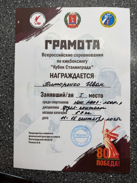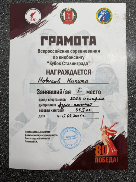 С 11 сентября по 15 сентября 2025 года в городе Волгоград проходили Всероссийские соревнования по кикбоксингу «Кубок Сталинграда».