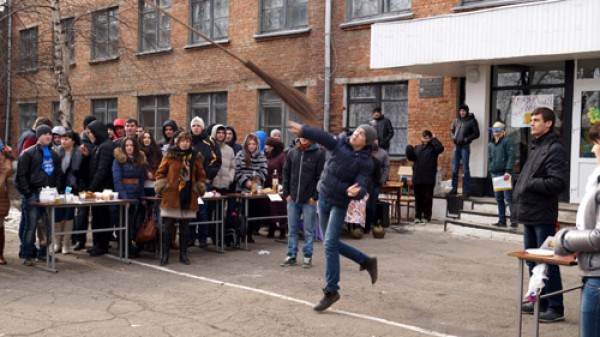 27 февраля 2014 года Артемовское структурное учебное подразделение ГБОУ СПО РО «Шахтинский региональный колледж топлива и энергетики им.ак. Степанова П.И.» устроило настоящие масленичные гулянья. Здесь было, как и полагается в «широкий четверг», и празднично накрытые столы, и зазывалы, и конкурсы, и, конечно, главная героиня торжества – Масленица. Все обучающиеся приняли активное участие в празднестве, и педагогический коллектив не остался равнодушен к проходившему мероприятию. Самый захватывающий конкур – метание метлы.