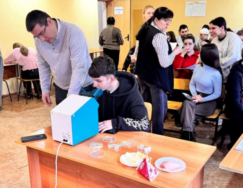 В конце мероприятия студенты приняли участие в проведении экспертизы на качество продуктов питания животного происхождения.